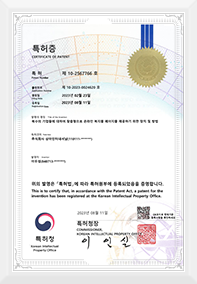 특허 등록 7건과 다수의 인증서를 보유하고 있습니다.